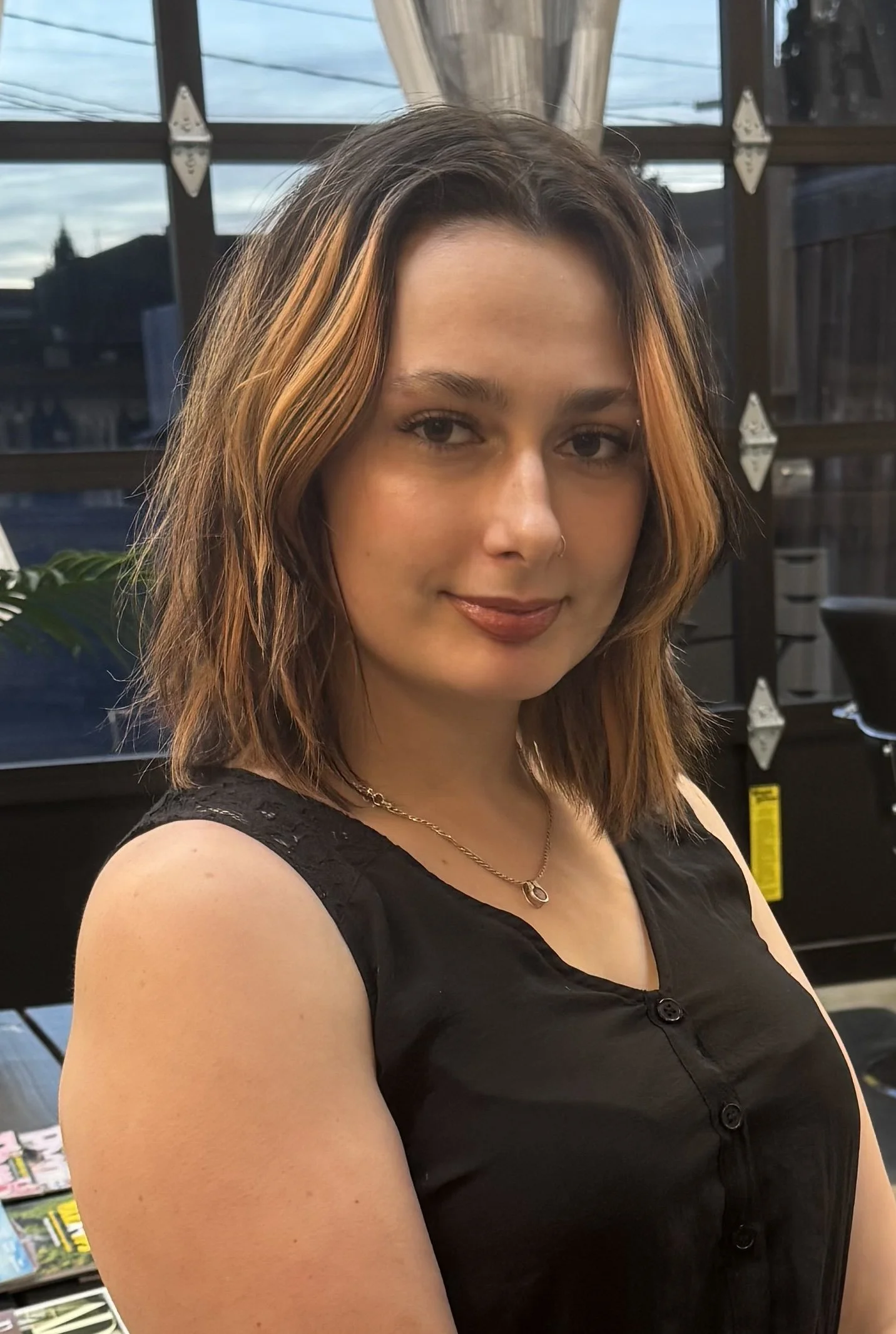 My goal as a stylist is to continue my education as much as I can. I really value collaborating with clients to create cuts and colors that are tailored to their individual style, using my craft to help people look and feel their best. I love balayage and highlights. I also especially enjoy layered cuts, blunt or classic bobs, and rich, natural looking colors.
